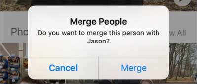 Når du har valgt grupperingene, kan du enten velge "Legg til" nederst på skjermen (for en enkelt gruppe) eller "Slå sammen" (hvis du har valgt flere grupper). Dette vil enten legge til den ene gruppen, eller slå sammen og legge til flere grupper, henholdsvis, i hovedpersonsalbumet hvor du kan trykke på gruppen av bilder og tildele et navn. Det er absolutt verdt den ekstra innsatsen her for å bla litt og sørge for at du har tatt en god del bilder av en bestemt person, siden det er så mye raskere å trykke "Slå sammen" en gang, enn å legge til eller merke bildene ved hjelp av andre arbeidsflyten i Bilder-appen.