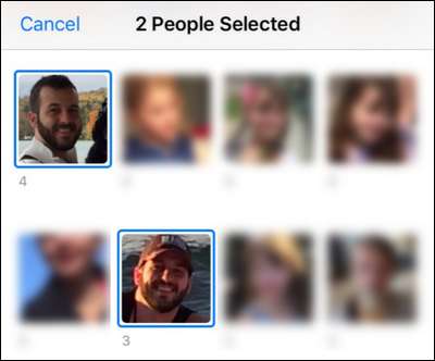 Her finner du et bredt spekter av ansikter - algoritmen for ansiktsgjenkjenning er så utrolig skarp at du til og med finner oppføringer for ansikter som var på reklametavler i bakgrunnen på bildene dine. Skjermbildet "Legg til personer" er spesielt hyggelig, fra et tidsbesparende synspunkt, fordi det lar deg velge flere grupperinger av bilder av samme person, slik: