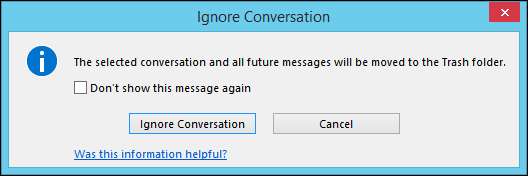 Hva gjør Ignore? Når du velger en melding eller samtale og klikker på "Ignorer", vises en dialogboks.