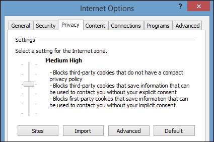 Klikk på "Personvern" -fanen og sett den til "Middels høy". Dette vil blokkere alle tredjeparts informasjonskapsler.