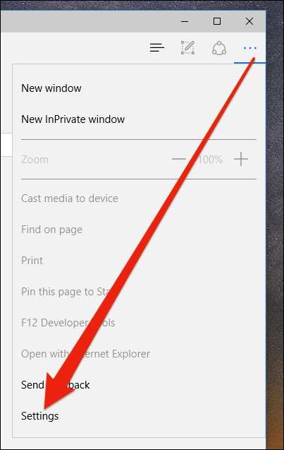 Hvis du bruker den nye Edge-nettleseren på Windows 10, kan du trykke eller klikke på de tre punktene øverst til høyre i nettleservinduet. Velg "Innstillinger" nederst i menyen.