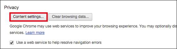 På skjermbildet for avanserte innstillinger, klikk "Innholdsinnstillinger ..." under overskriften Personvern.