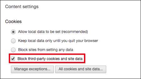 I innstillingene for informasjonskapsler er alt du gjør å fjerne merket for "Tillat tredjeparts informasjonskapsler".
