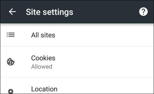 For å angi hvilke informasjonskapsler som er tillatt, må du trykke på "Nettstedsinnstillinger" i Avanserte alternativer, og deretter trykke på "Informasjonskapsler".