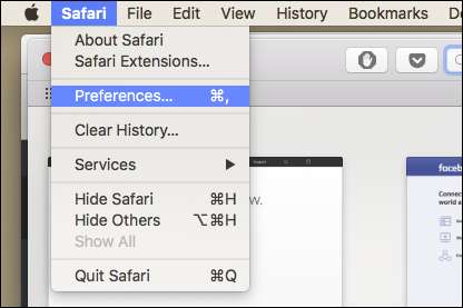 På Safari for OS X, må du åpne Innstillinger ved å klikke på Safari-menyen eller ved å bruke den gamle standard hurtigtasten "Command +".