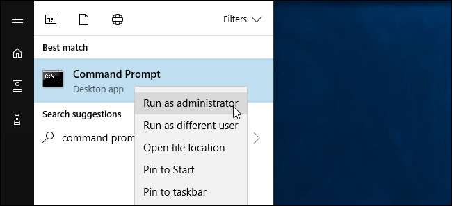 kommandoen, kjør som administrator. For å åpne et ledetekstvindu, åpne Start-menyen, søk etter ledetekst, høyreklikk snarveien "Kommandoprompt" og velg "Kjør som administrator".