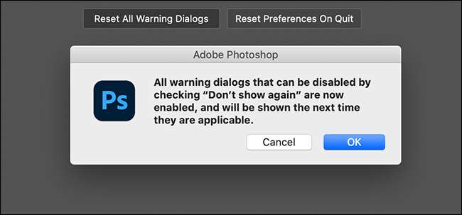 Selv om det ikke er mulig å tilbakestille individuelle advarselsdialoger, kan du tilbakestille dem alle. Dette betyr at du må sjekke noen få "ikke vis igjen" bokser for vanlige funksjoner, men de viktigste popup-vinduene vil også være tilbake. Bare vær litt mer forsiktig med å avvise dem neste gang du ser dem.