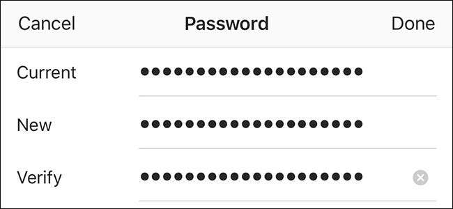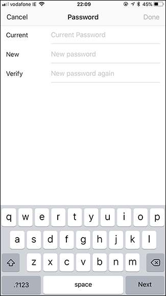 Skriv inn ditt nåværende passord og ditt nye passord to ganger.