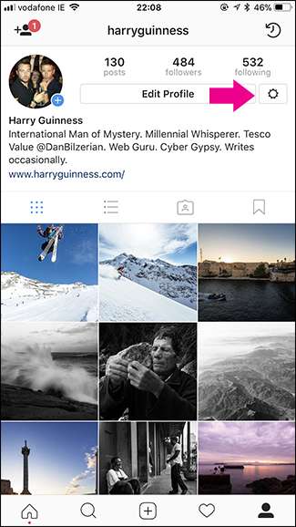Åpne Instagram-appen og gå til profilsiden din. Trykk på Innstillinger-ikonet øverst til høyre, og velg deretter Endre passord.