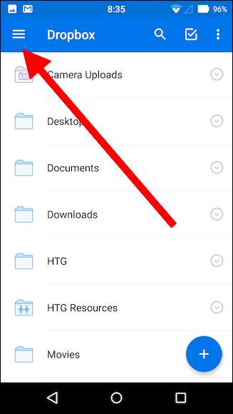 Hvis du bruker en Android-enhet, åpner du Dropbox-app og trykk på de tre linjene øverst til venstre.