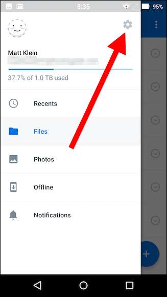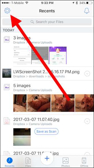 For å tømme Dropbox-hurtigbufferen, åpne Dropbox-appen på iPhone og trykk på tannhjulikonet øverst til venstre.