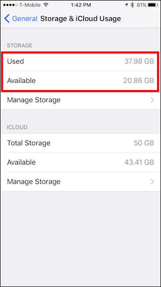 For å gjøre dette, åpne Innstillinger på iPhone, gå til Generelt> Lagring og iCloud-bruk, og sjekk Brukt og tilgjengelig lagring på enheten
