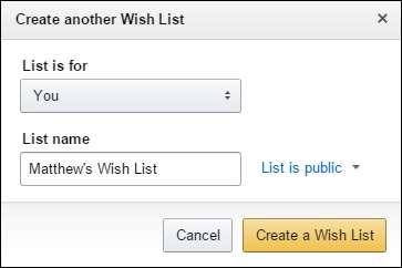 Legg også merke til muligheten til å lage en annen ønskeliste. Dette er et verdifullt verktøy for å sortere gjennom rotet og legge litt organisasjon til listen din. I stedet for å ha alt i en lang, generisk hovedliste, kan du i stedet lage en ny liste for typer varer, og gi den et passende navn.