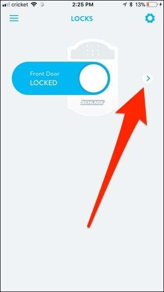 Velg din lås i appen, og trykk deretter på pilen til høyre.