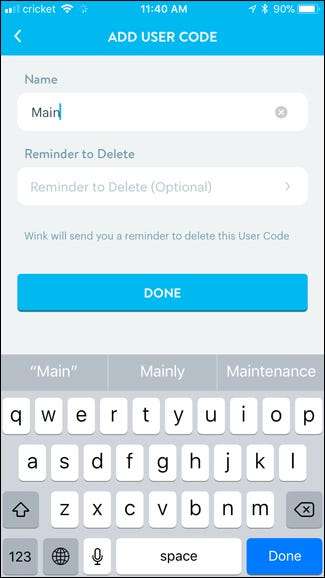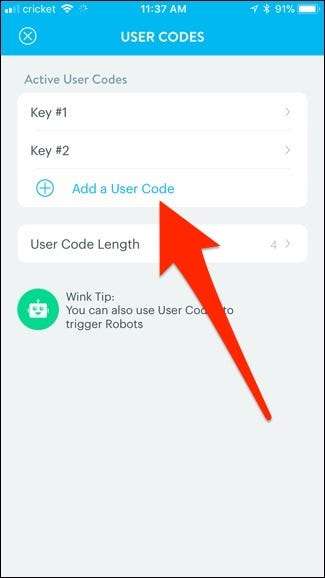 Du må kanskje oppgi Wink-passordet ditt før du fortsetter, men når det er gjort, kommer du til skjermbildet Brukerkoder. Trykk på “Legg til en brukerkode”.