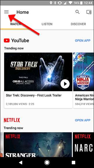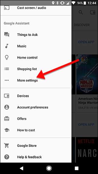For å lage en snarvei, åpne Google Home-appen og trykk på menyikonet øverst til venstre, og trykk deretter på "Flere innstillinger".