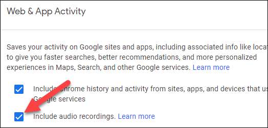 Se etter "Activity Controls" -delen og klikk på "Web & Amp; Appaktivitet. "