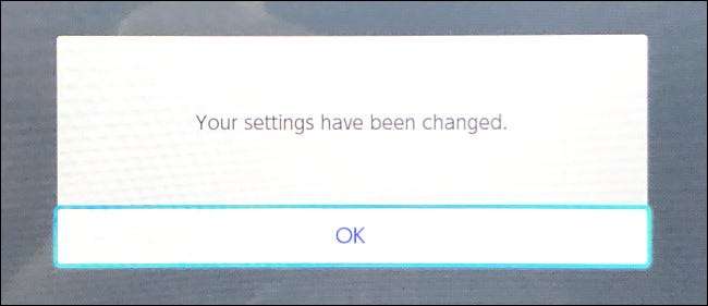 Du vil se en "Dine innstillinger har blitt endret" melding. Trykk eller velg "OK" for å forlate menyen.