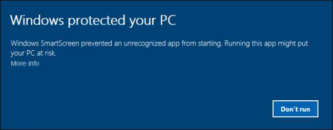 Hvis operativsystemet ditt bruker noen form for kjørbar beskyttelse, slik som Windows gjør med SmartScreen, vil du ikke kunne kjøre XOWA før du gir det tillatelse til det. Så på Windows må du klikke "Mer info" i følgende melding.