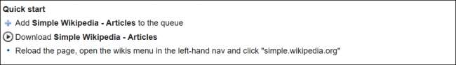 For å stille en wiki i kø, klikk på "+" - tegnet, og klikk på spillesymbolet for å begynne nedlastingen.