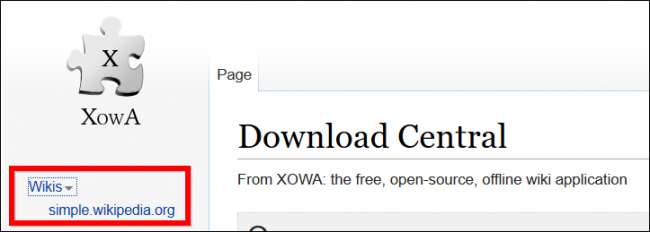 Når du har lastet ned wikiene dine, kan du få tilgang til dem øverst til venstre i nettleservinduet.