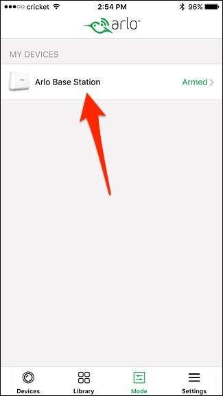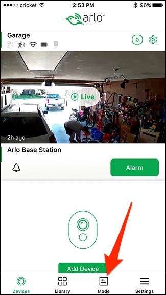 For å starte, åpne Arlo-appen og trykk på "Mode" -fanen nederst.
