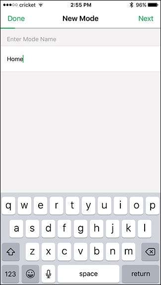 Skriv inn et navn for den nye modusen og trykk deretter på "Neste" øverst til høyre på skjermen.