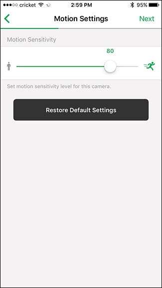 Deretter justerer du bevegelsesfølsomheten ved hjelp av glidebryteren og trykker "Neste" når du er ferdig.