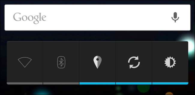 Strømkontrollwidgeten er veldig nyttig fordi den lar deg enkelt aktivere, deaktivere eller justere de fem funksjonene på enheten din som er de mest beryktede batterivaskene: Wi-Fi, Bluetooth, GPS, bakgrunnsdatasynkronisering og skjermens lysstyrke.