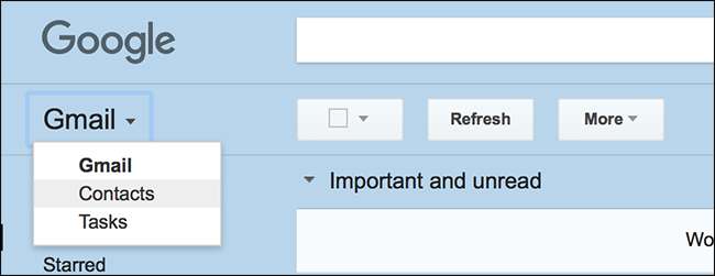 Den forrige versjonen av Gmail, nå kalt "Klassisk Gmail", hadde en rullegardin øverst til venstre for rask tilgang til kontakter og oppgaver.