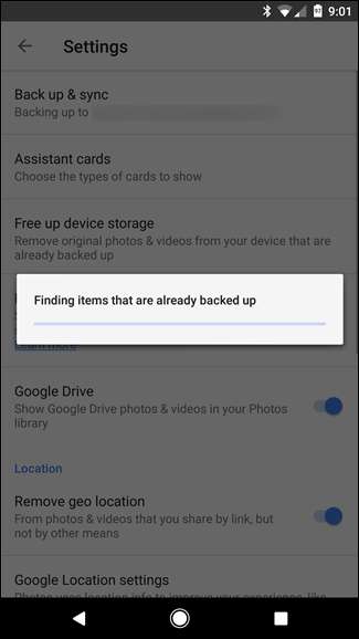 Bilder gjør dette latterlig enkelt: med en knapp kan du raskt slette alle bildene og videoene fra telefonen som allerede er sikkerhetskopiert.