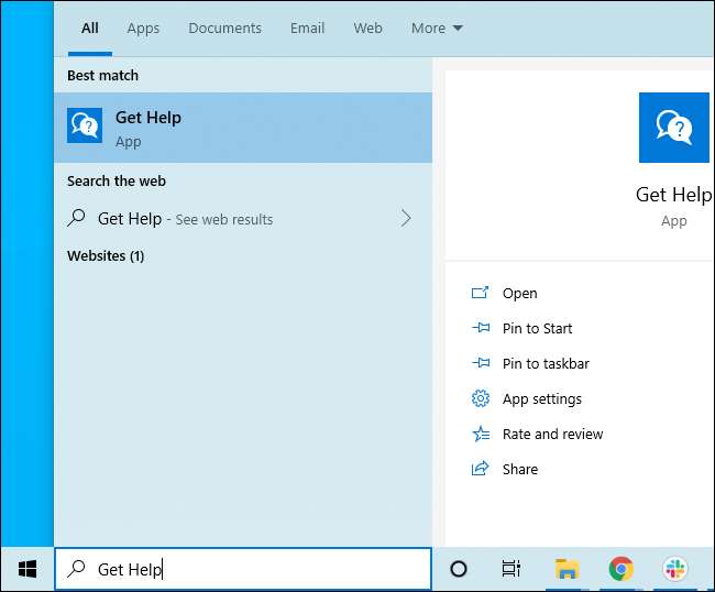 Windows 10 inkluderer et Get Help-program som kan gi løsninger på mange problemer. Du finner den i Start-menyen. Klikk Start-knappen, skriv "Få hjelp", og klikk snarveien "Få hjelp" som vises, eller trykk Enter. Du kan også bla gjennom listen over applikasjoner på venstre side av Start-menyen og klikke på snarveien "Få hjelp".