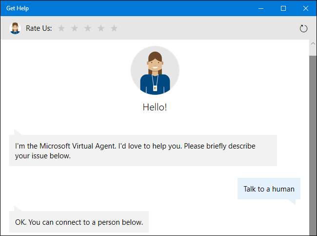 Windows 10 har en innebygd Get Help-app som tilbyr løsninger på problemer og til og med kobler deg til en menneskelig støtteperson. Det er bare en av Windows 10s praktiske innebygde støttealternativer.