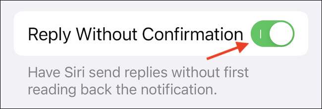 Hvis du vil svare på meldinger uten å høre en bekreftelse fra Siri, aktiver alternativet "Svar uten bekreftelse". [1. 3]