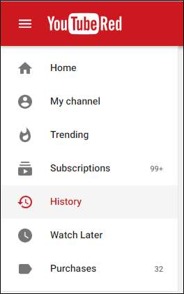 For å tømme eller stoppe YouTube-seer- og søkeloggen din, naviger til YouTube website , og klikk deretter på Historie lenke. Det er verdt å nevne her at dette ikke kan gjøres fra appen - det må gjøres fra nettstedet, enten på skrivebordet eller på mobilnettstedet.
