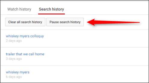 For å ta dette et skritt videre, kan du klikke på "Søkehistorikk" -fanen, og deretter klikke på tøm eller pause-knappen der. Dette vil forhindre at også søk blir logget.