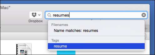 Så hvis vi vil finne gamle CVer, kan vi bruke taggen vår. Vi skriver inn søket vårt, og vi kan se resultatene etter filnavn eller koder.