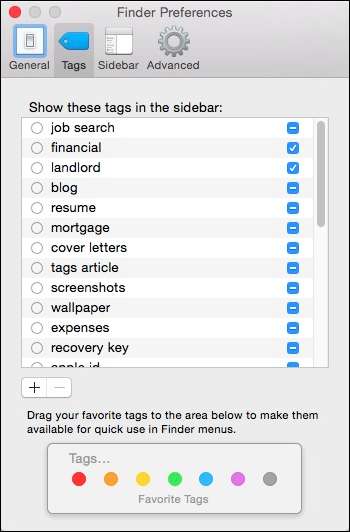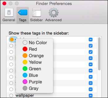 Til slutt, her er kategorien for merkepreferanser, som du kan få tilgang til fra Finder-innstillingene ("Command +"). Dette kommer til å gjøre livet ditt ganske enkelt lettere når det gjelder generell taghåndtering.