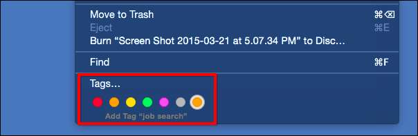 Merker er akkurat slik de høres ut som de er. Du velger i utgangspunktet bare filer og legger til etiketter. Disse etikettene er bare metadata for å beskrive filinnholdet. Du kan legge til så mange koder du trenger, så kanskje du legger til koden "selvangivelser" i selvangivelsen, og du merker andre skatterelaterte papirer som "kvitteringer".
