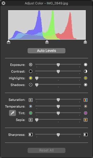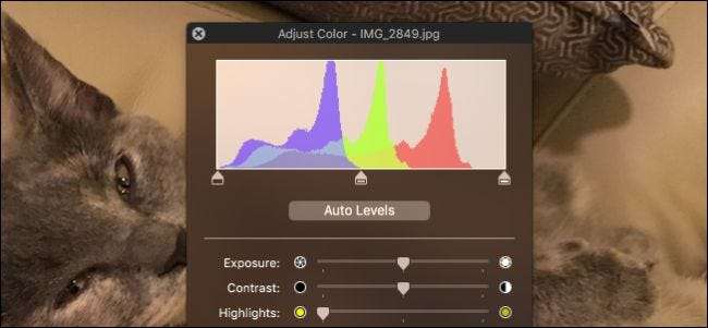 Raske fargekorrigeringer er en annen oppgave du kan utføre med Preview, som er ganske greit, spesielt hvis du ikke vil bruke et annet program, eller bare har ett eller to bilder du vil fikse.