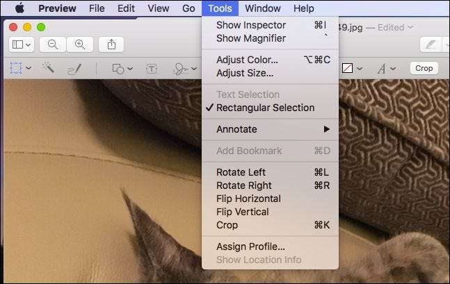 For å bruke fargekorrigering ved forhåndsvisning, må du først åpne et bilde du vil justere, klikke på Verktøy-menyen og velge "Juster farge" eller trykke Kommando + Alternativ + C på tastaturet.