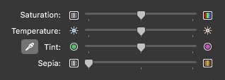 For å konvertere et bilde helt til svart og hvitt, flytt skyvemetteren til metning helt til venstre, eller spill deg videre med fargen ved å justere temperatur-, fargetone- og sepia-kontrollene.