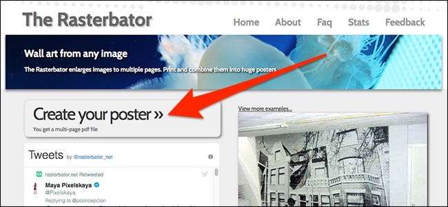 Start med å besøke Rasterbator nettstedet og klikke på knappen "Create Your Poster" for å komme i gang.