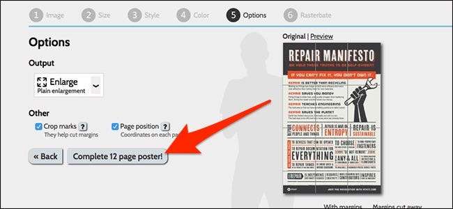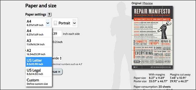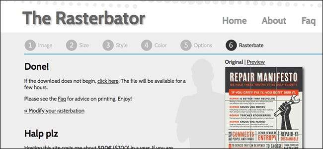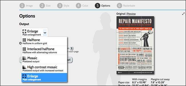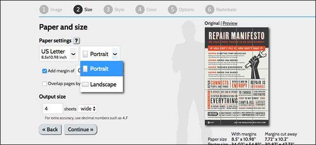 Det er flere gratis nettverktøy som kan konvertere bilder til et format som er egnet for flislagt utskrift, men min favoritt (og den mest populære tjenesten) er Rasterbator . Men før vi fortsetter, er det viktig å vite om et par termer.