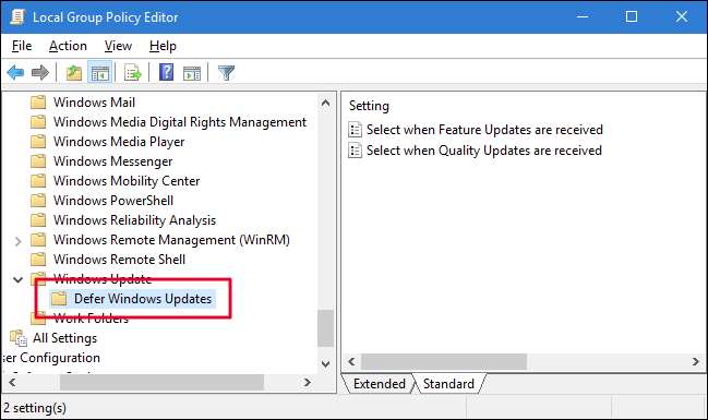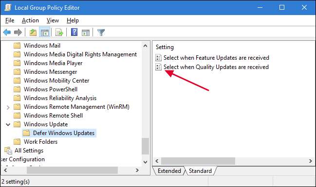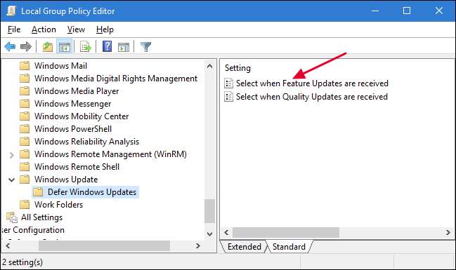 Dobbeltklikk på innstillingen "Velg når funksjonsoppdateringer mottas" på høyre side for å åpne vinduet med egenskaper.