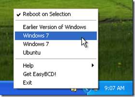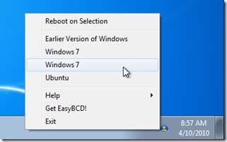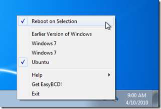 iReboot er rask og enkel å installere. Bare last det ned, lenke nedenfor, gå gjennom oppsettet og velg standardkonfigurasjonen. iReboot vil automatisk finne ut hvilke operativsystemer du har installert og vises i oppgavelinjen. Gå til oppgavelinjen og høyreklikk på iReboot-ikonet og velg hvilket operativsystem du vil starte på nytt.