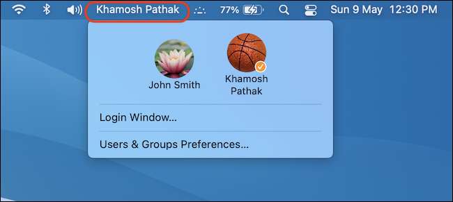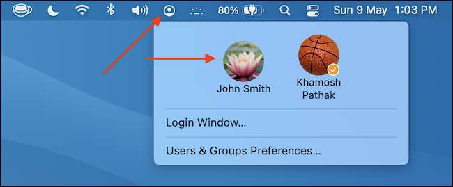 Hvis du vil bruke funksjonen du nettopp aktivert, klikker du på ikonet Fast User Switching Menu Bar (som ser ut som omregningen av en person i en sirkel) i øverste høyre hjørne av skjermen. Du vil se alle tilgjengelige brukere. Velg en bruker for å bytte til dem.