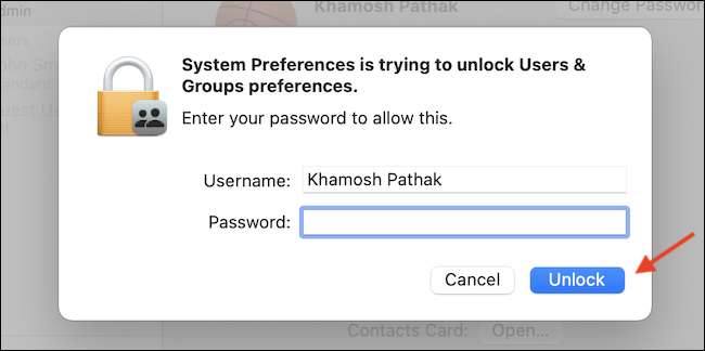 Hvis brukerkontoen ikke er passordbeskyttet, vil MacOS bytte til det umiddelbart. Hvis det er, må du skrive inn passordet eller bruken Trykk på ID for å logge inn .