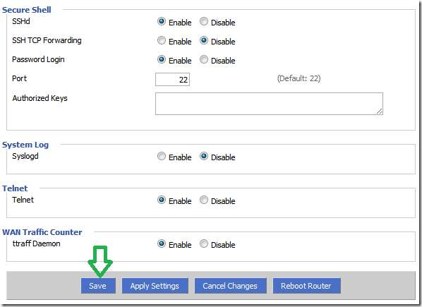 Ved å aktivere SSH gir vi oss selv muligheten til å koble til ruteren ved hjelp av SCP-protokollen. med det aktivert, kan vi deretter bruke winSCP-programmet til å visuelt navigere i mappestrukturen til ruteren (som vi vil se senere).