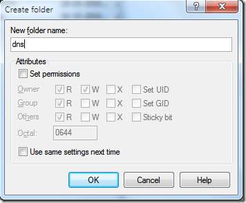 Gi den nye katalogen navnet “dns”. vi oppretter denne katalogen for å holde ting i jffs-katalogen organisert for fremtidig bruk, og fordi vi for det meste endrer hvordan DNS-tjenesten fungerer.